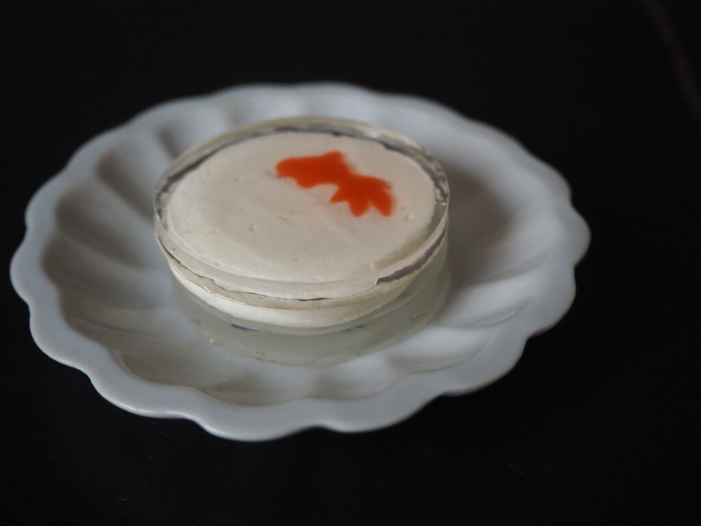 「出目金」も同様に、レモン風味の錦玉でバターの練りものをサンドしたものでした。