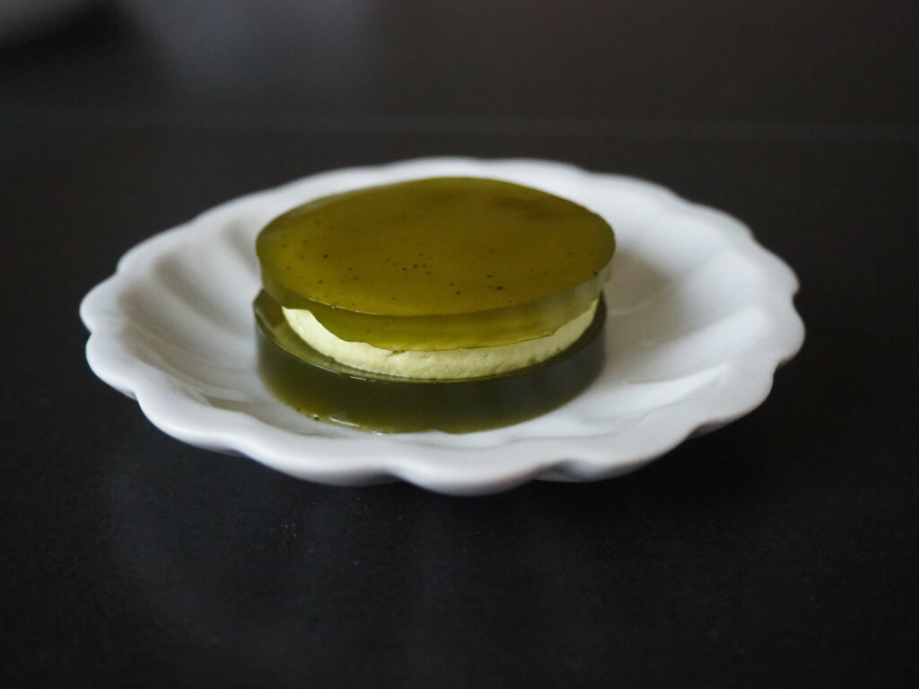 一方で滑らかな練りものはコクがあり、バターの甘みと香りが洋菓子らしさを感じさせる不思議な味わいでした。最後には錦玉のレモン風味が口に残り、さっぱりとした印象です。