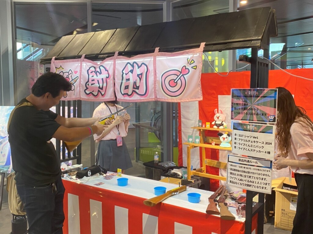 射的や糸くじ引きといった屋台から、焼きそばや揚げたこ焼きまで。お祭り定番の屋台が並び、ライバーが考案したのれんとともに、会場はお祭り気分で大盛り上がり!
