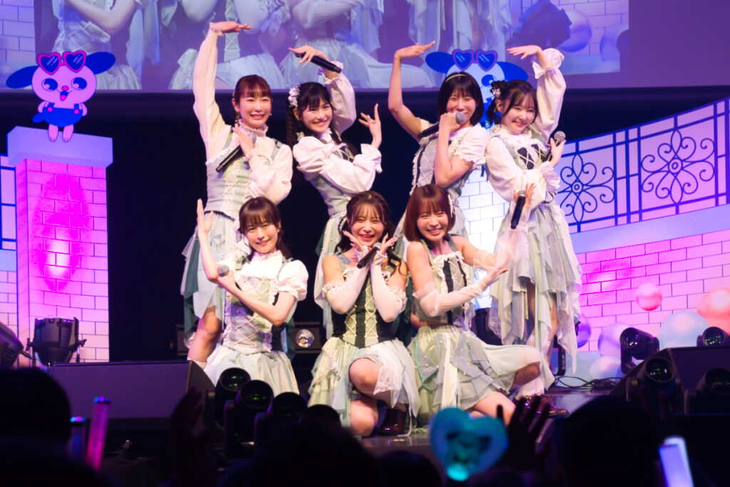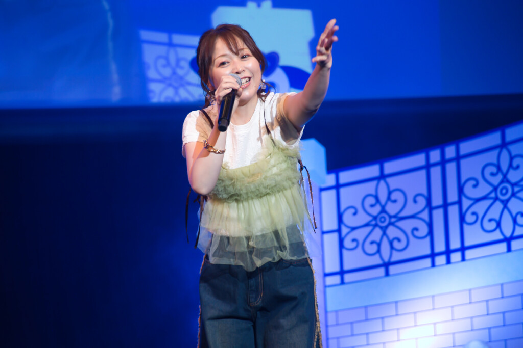 まさみんがコーレス盛りだくさんな『虹色ひまわり』を元気いっぱいに歌うと、オープニングLIVEから衣裳チェンジしたなりちゃんが『エンドロールまで側にいて』を披露。なりちゃんは「オリジナル楽曲はひとつの目標だったので、こうして披露できて感慨深いです」と、目を輝かせながら語る場面も。