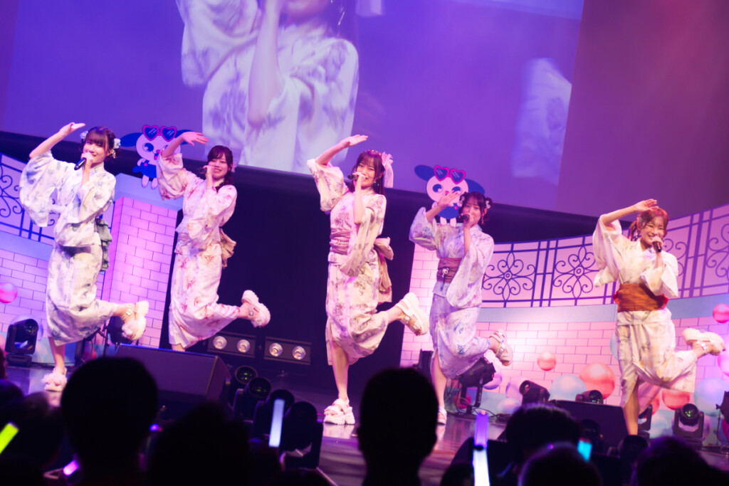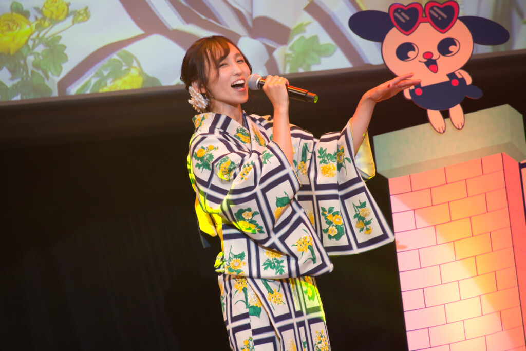 トップバッターのVOISS(AYA、saki、おきえ、会社員のjun、彩陽)は『ミックスナッツ』を熱唱。パワフルな歌声で客席を魅了した。2番手はアイドル全開のTwinkle☆5(えりんこ、こもも、ユカリ、清野真帆、石川花音)。この日だけのユニットとは思えない一体感あるパフォーマンスを、かわいらしい浴衣姿で見せてくれました。