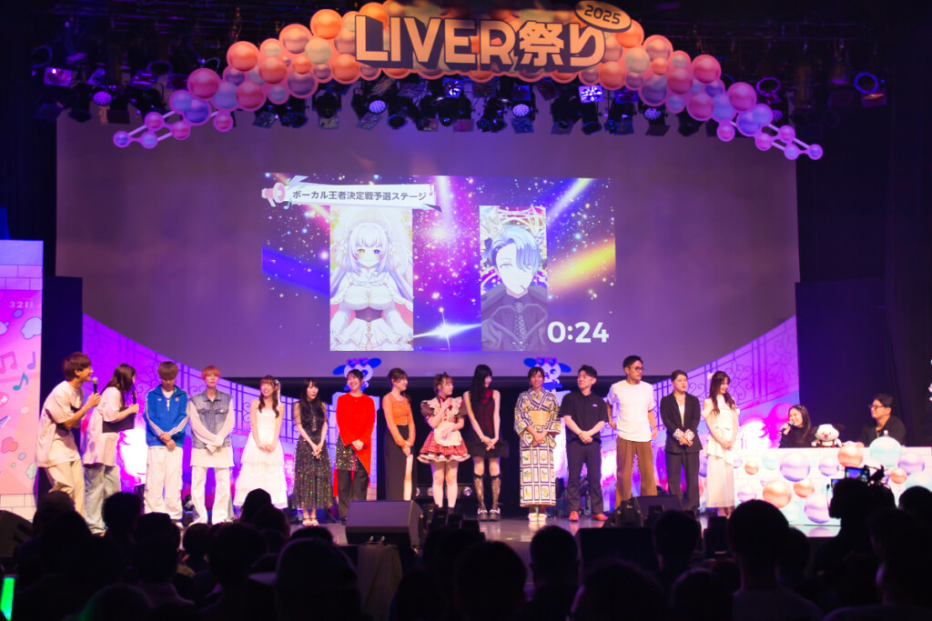 イベントは後半戦へ!本イベントの目玉であるボーカル王者決定戦の予選では、イベントを勝ち抜いた13人のライバーと2人のVライバーが出場。