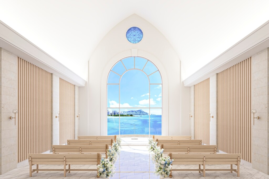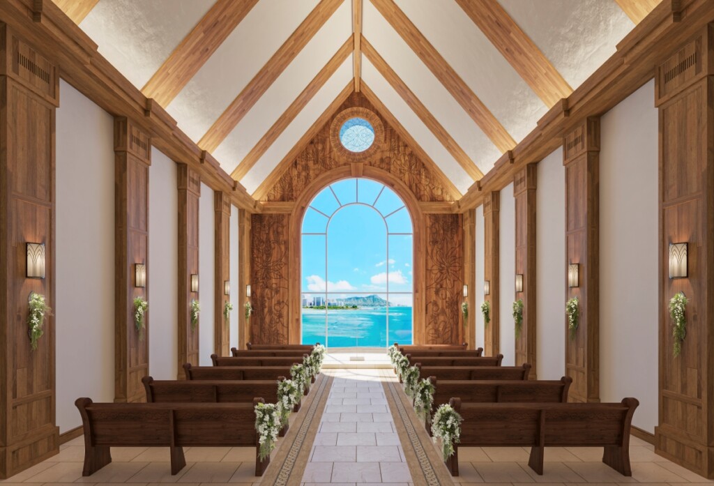 ハワイの聖なる木・コアウッドの温もりに包まれたチャペル。