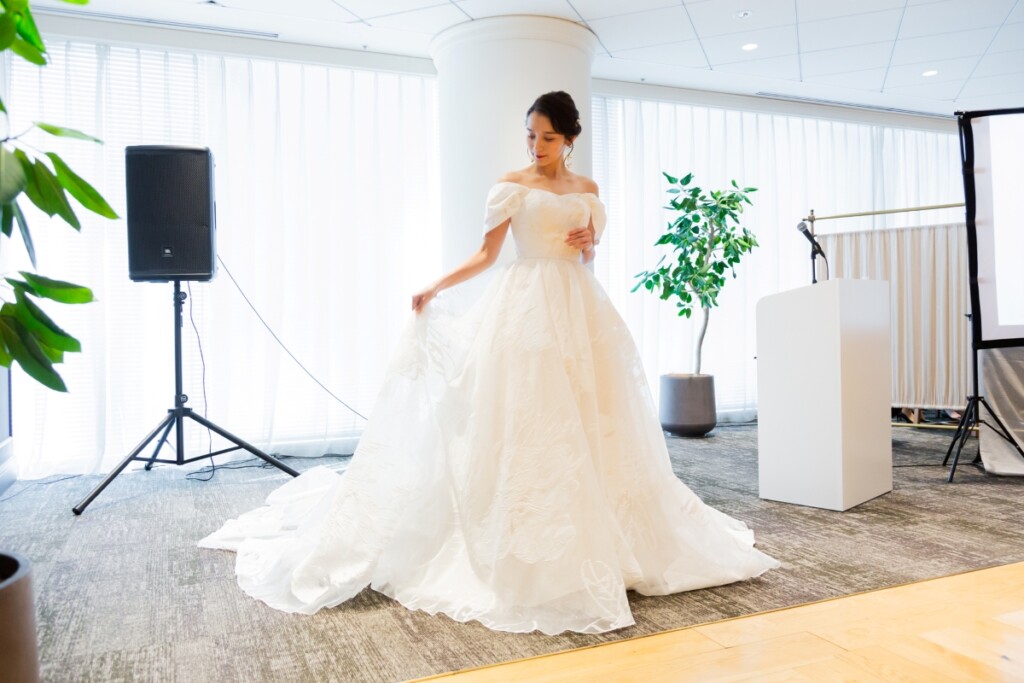 洗練された空間の中で、花嫁をより華やかに引き立てる一着。