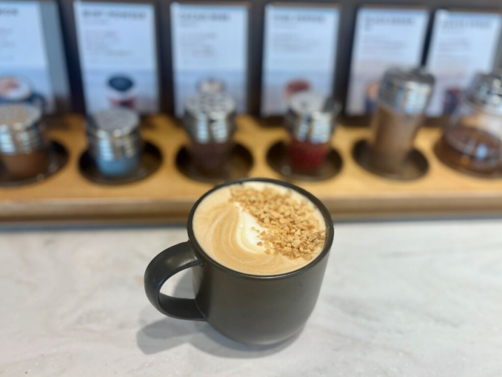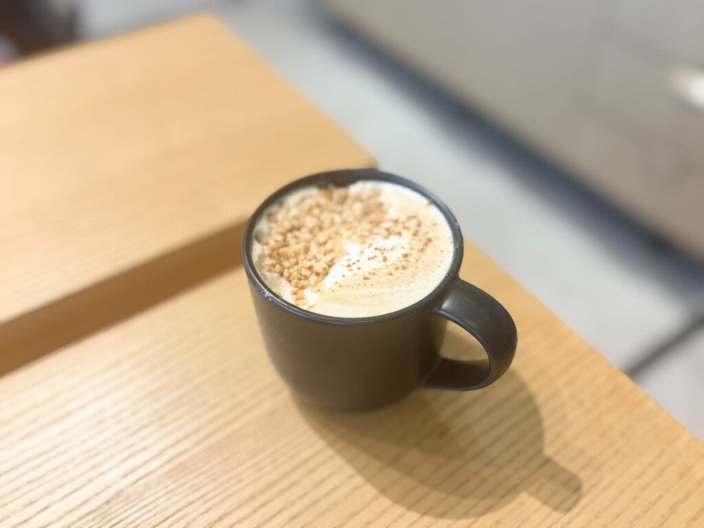 ビバレッジも店舗限定のメニューがあり、どれにするか迷いましたが、「ショートブレッド ラテ」という、エスプレッソにショートブレッドフレーバーのシロップとクランチを加えたラテに決めました。
