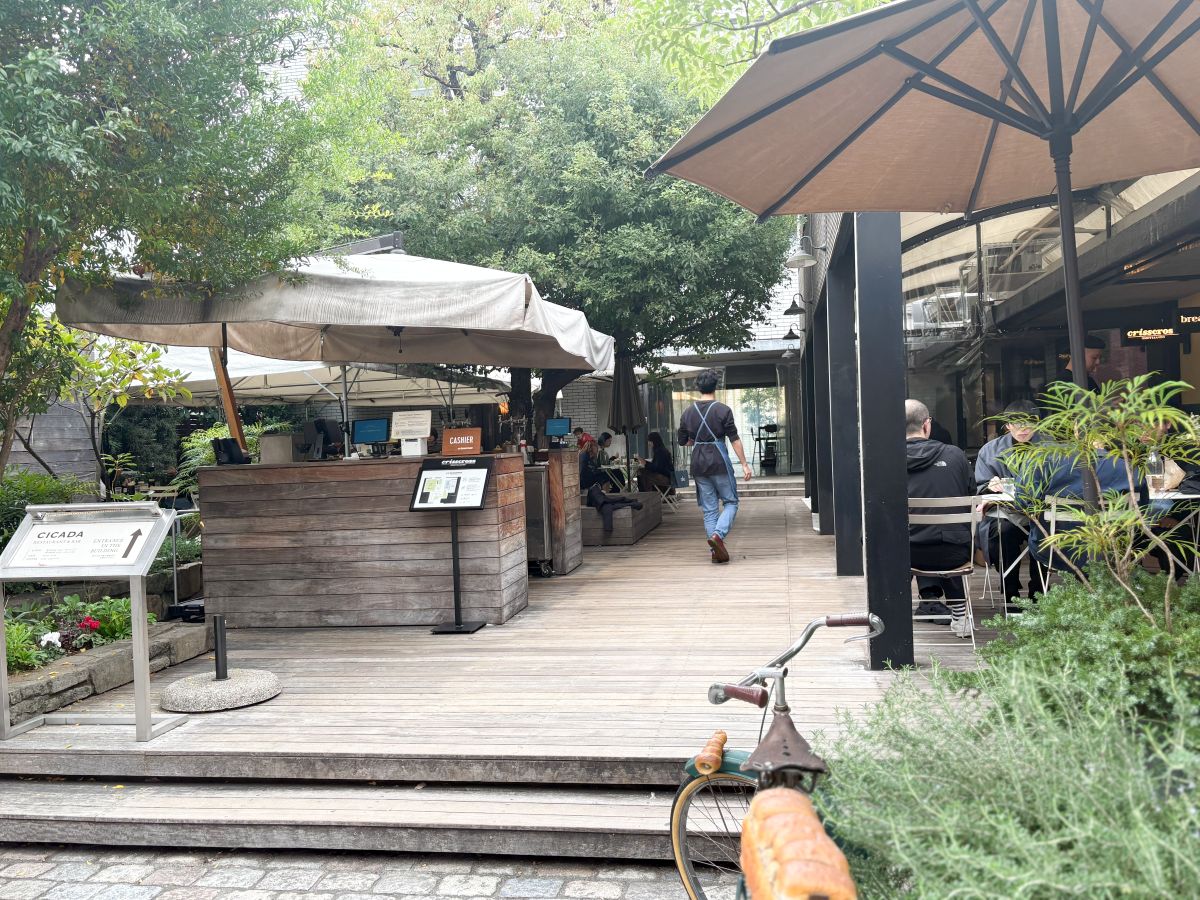 表参道の風を感じながら2人で特別な時間を過ごすのも素敵ですよね。テラス席にはパラソルが設置されています。