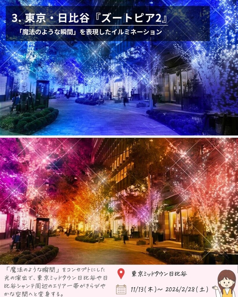 東京ミッドタウン日比谷のイルミネーションイベントは、11月から2026年2月まで長期で開催されます。