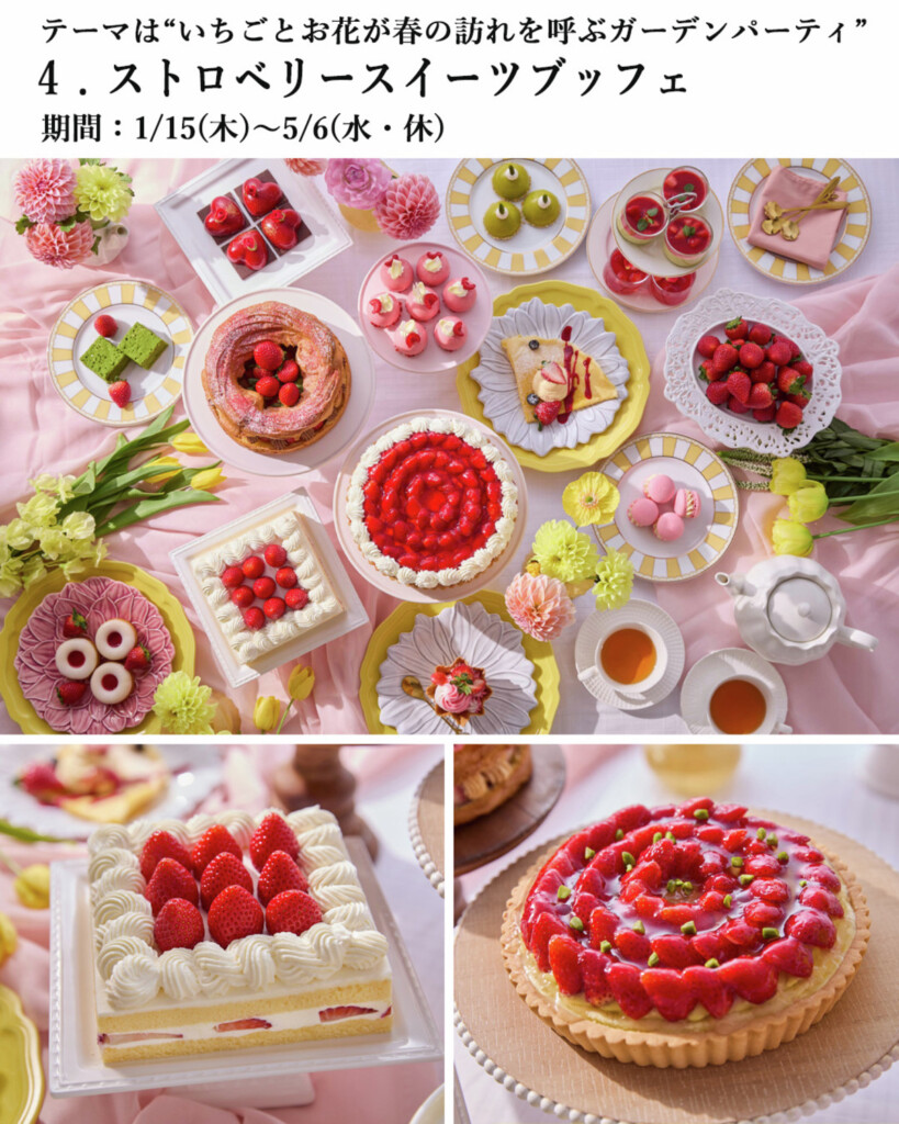 ホテルニューオータニ東京のスイーツビュッフェでは、濃厚な味わいの「あまおう」を使ったメニューが展開されます。