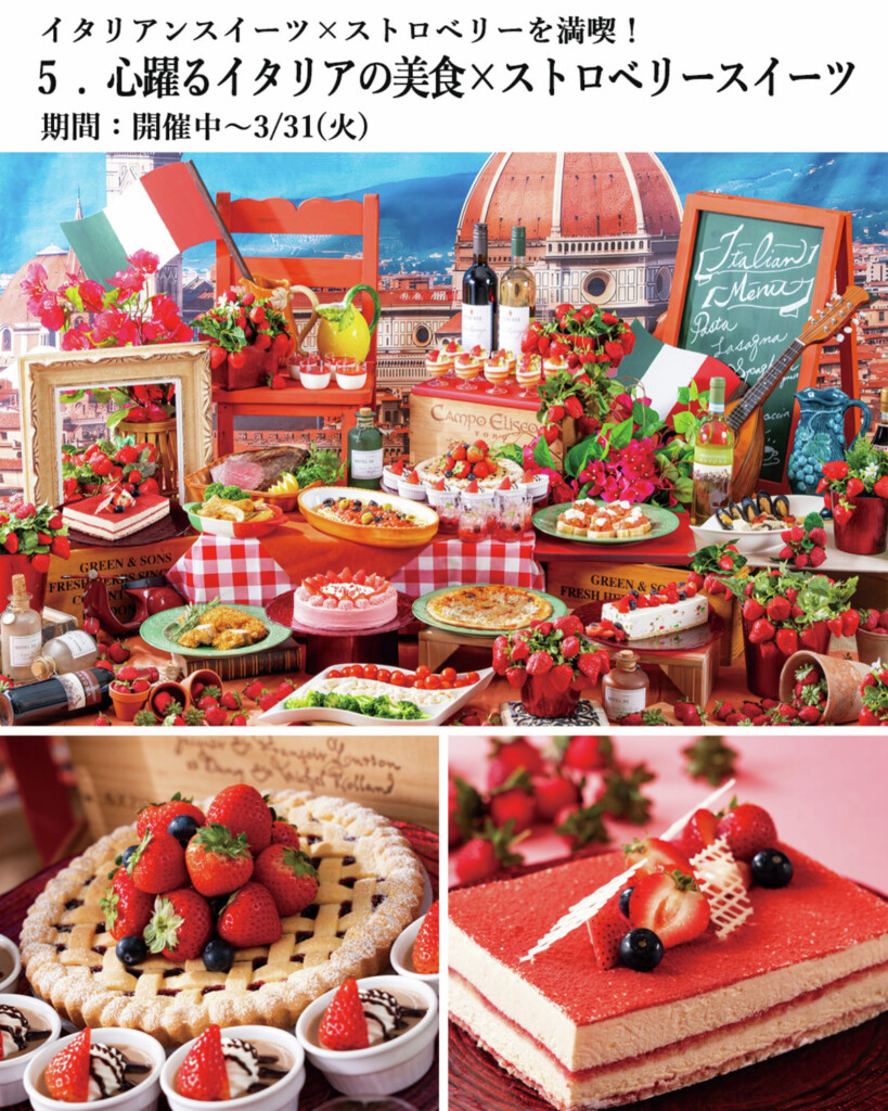 京王プラザホテル八王子では、「心躍るイタリアの美食×ストロベリースイーツ」と題したビュッフェを開催。