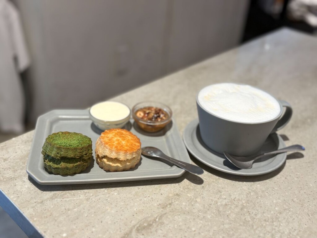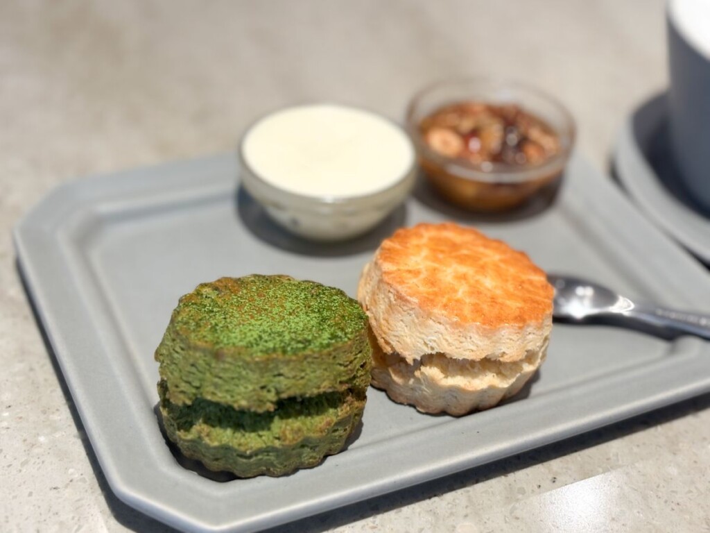 スコーン2個とスプレッド2種が付いてくるセットで、スコーンは+60円で抹茶やシーズナブルスコーンに変更することができます。(2026年2月現在)