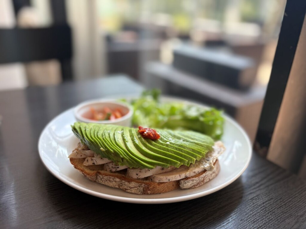 カンパーニュの上にチキンとアボカドがたっぷりトッピングされたボリューミーな1品で、とても食べ応えがあります。
