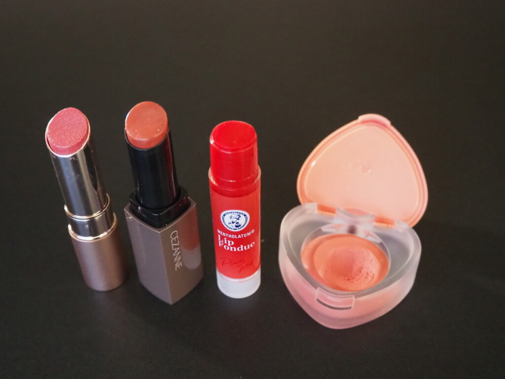 続いて、4種類のリップメイクを比較しました。アイテム名と価格は次の通りです。(画像左から)