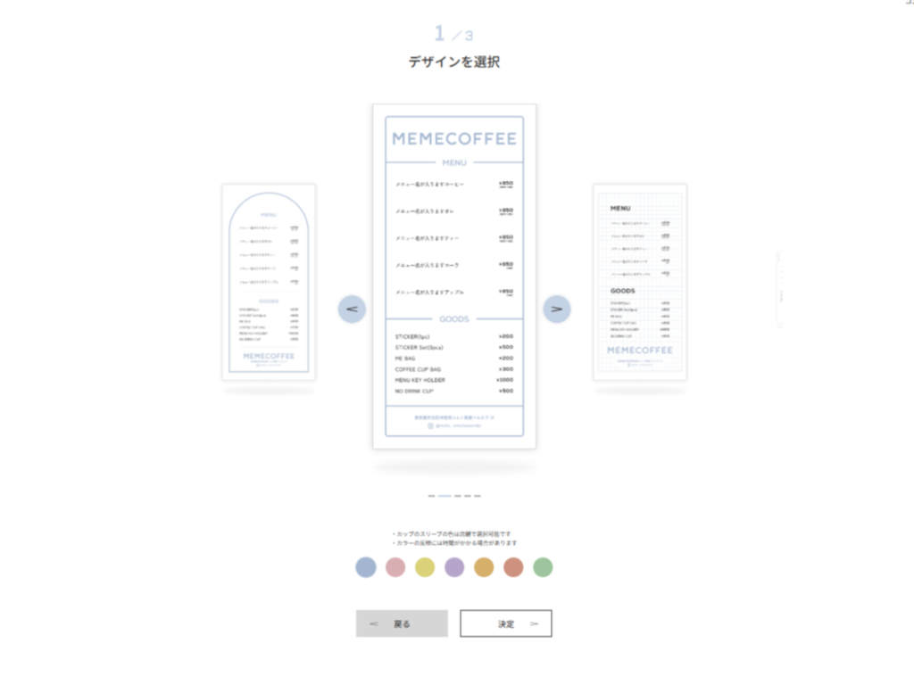 最初のページで、メニュー表のデザインと色を選びます。