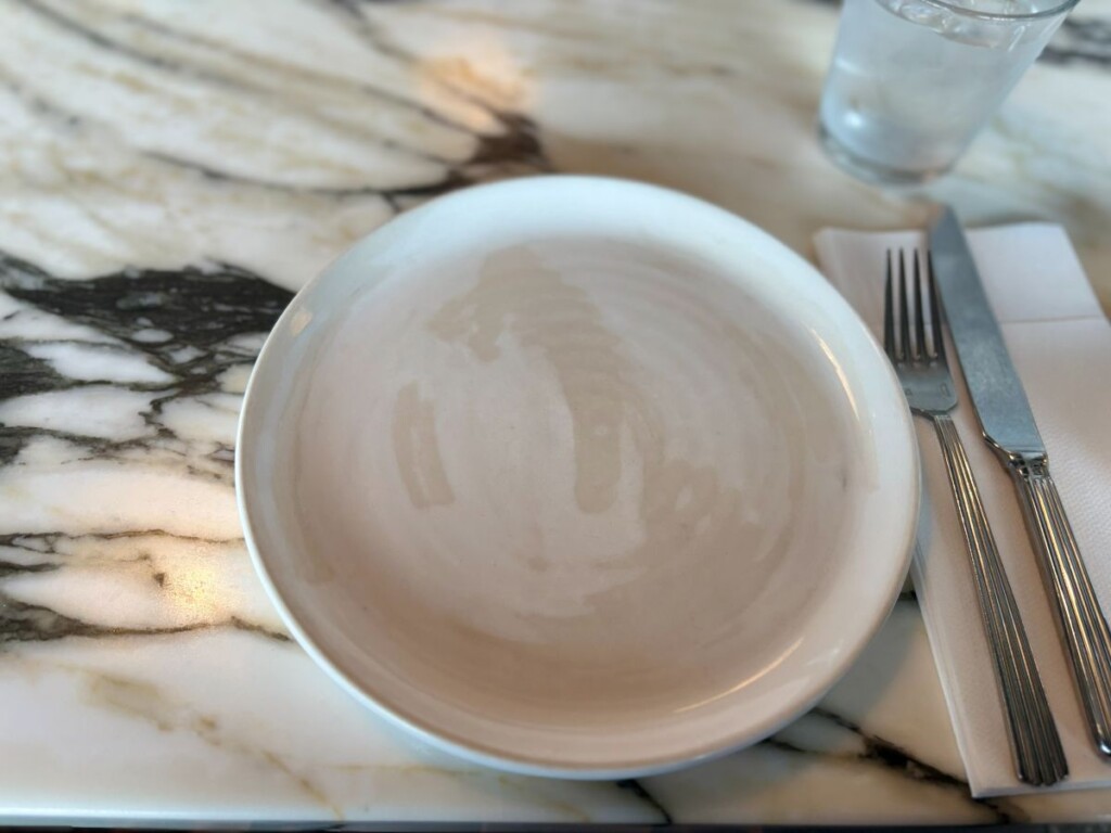 GinzaNovoの11階に上がると、まず目に飛び込んでくるのがグレーを基調としたスタイリッシュな外装。明るく広々した店内は開放感たっぷりで、大理石のテーブルやカウンターがモダンな高級感を醸し出しています。