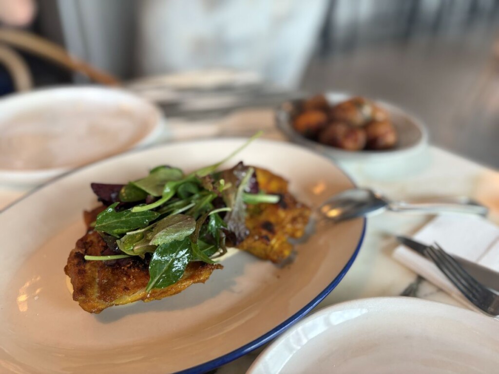 ボリュームもあり食べ応えもあります。お肉の下に添えられたソースと合わせて食べるとまた違った味わいに!シェアスタイルですが予め半分に切ってあったので、取り分けも簡単でした。